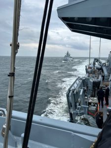 An Bord der Korvette MAGDEBURG: das  Schwesternschiff Korvette EMDEN in Sicht. Foto: Bernd Koller.