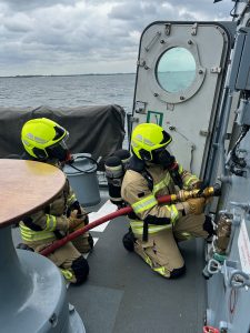 Brandschutzübung an Deck der  Korvette  MAGDEBURG. Foto: Bernd Koller.