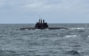Uboot der Klasse 212 A – U 35 auf Begleitfahrt mit der MAGDEBURG. Foto: Sven Mues.